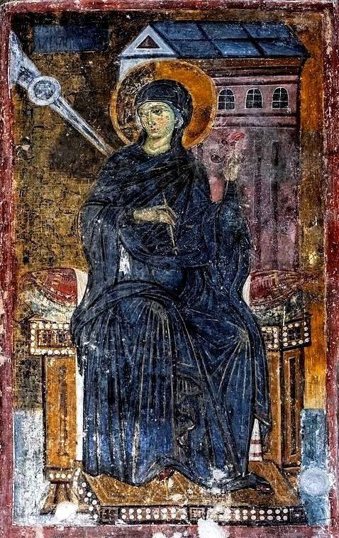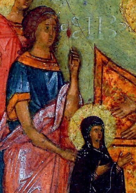 Понятно, что чин диаконисс появился уже после того, как по всей экумене появились многочисленные христианские общины. Но этот анахронизм для византийских художников не важен – важен символический смысл. При том, что этот чин к XIII в. уже практически исчез, но память о нем, как видим, сохранялась еще долго.