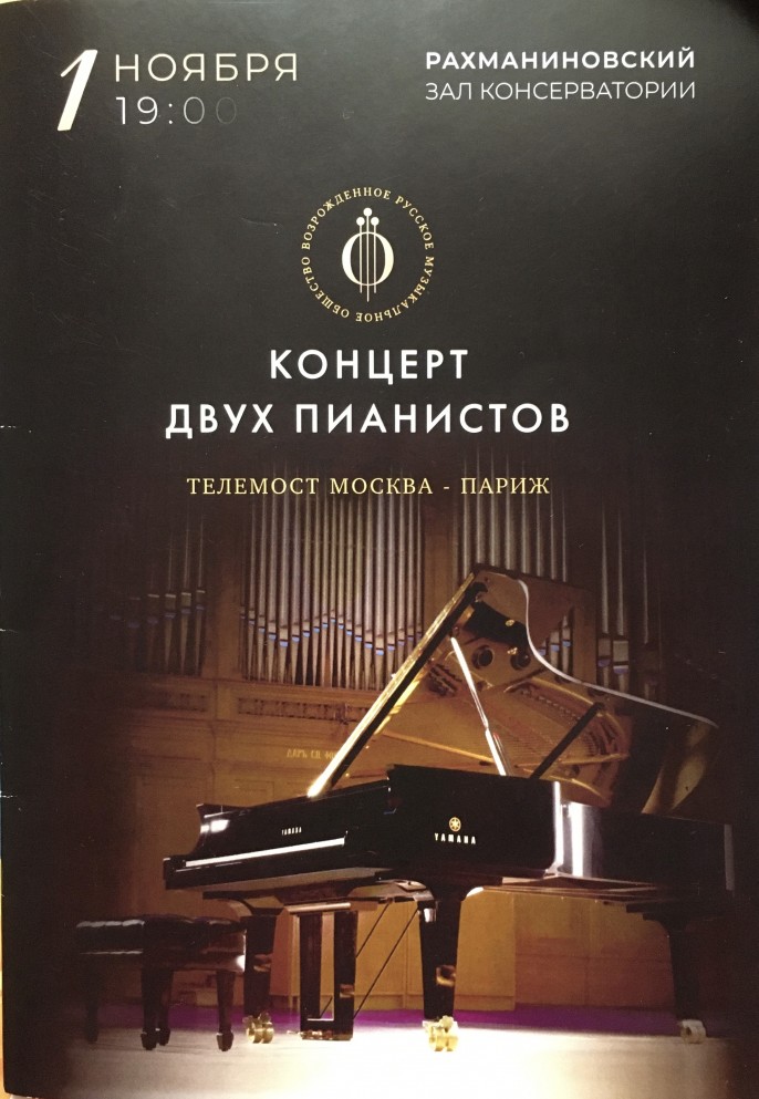 Сегодня директор Русской консерватории в Париже и глава филиала РМО во Франции – Арно Фрилле. Специально приехал в Москву. Предваряя в Рахманиновском зале консерватории «Концерт двух пианистов» назвал концерт – «вечером памяти», «вечером мира, надежды, символизирующим связь между Парижем и Москвой, между Францией и Россией».