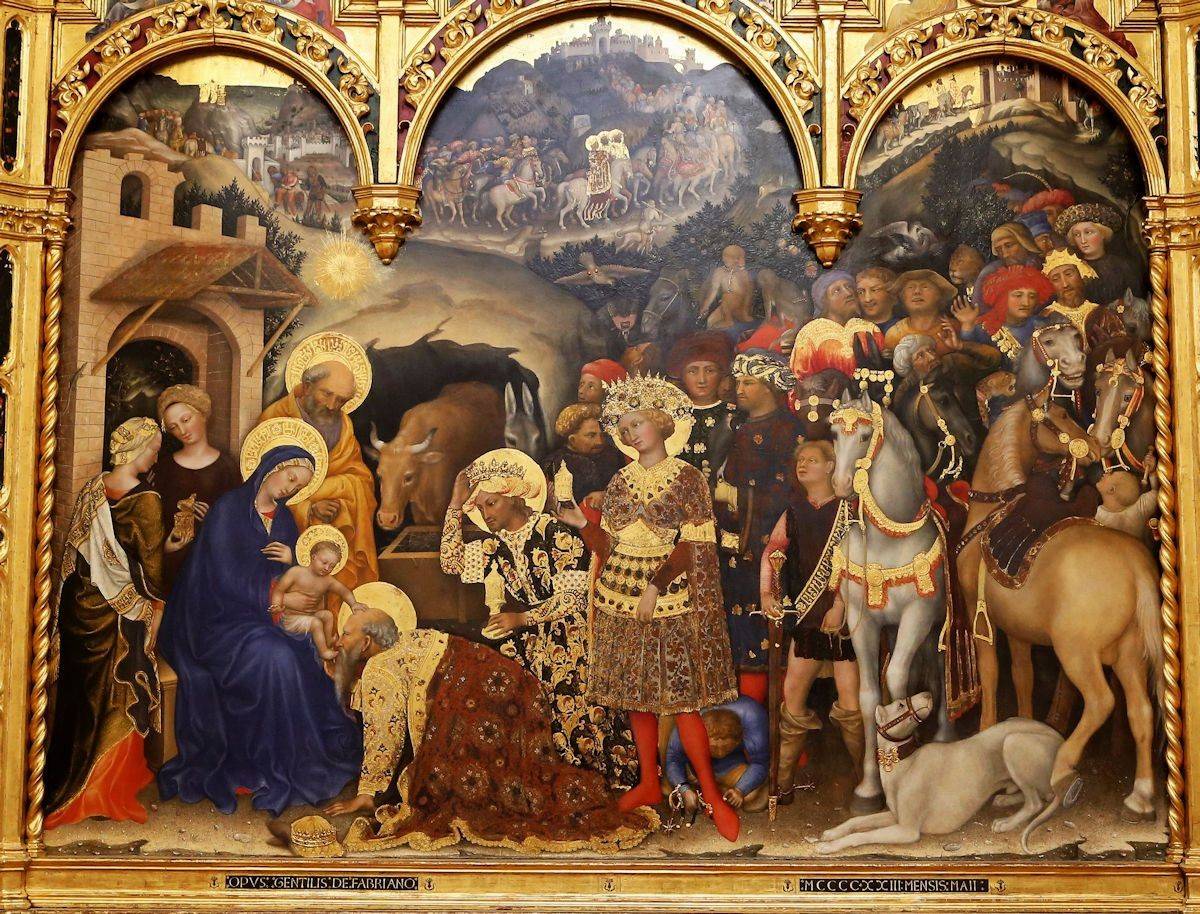 На знаменитом алтарном образе мастера готического искусства Джентило да Фабриано (1370-1427) мы видим, что из гардероба волхвов исчезают восточные головные уборы, место которых занимают королевские короны. Средневековая культура начинает именовать «магов» «королями».