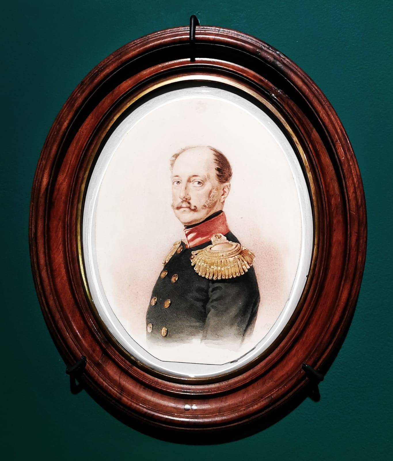 На выставке представлен маленький овальный портрет Николая работы Александра Соколова. К сожалению, здесь царь уже не тот Аполлон, коим он был в 1820-е годы - тогда его называли «самым красивым мужчиной Европы» - и это без доли изысканной лести – чего бы в Лондонах да Парижах льстить России? В обывательском сознании Пушкин вечно юн, а Николай – этакий пожилой службист с лихо закрученными усами. В реале Пушкин моложе Николая всего на три года. Вот строки, посвящённые царю: «Его я просто полюбил: /