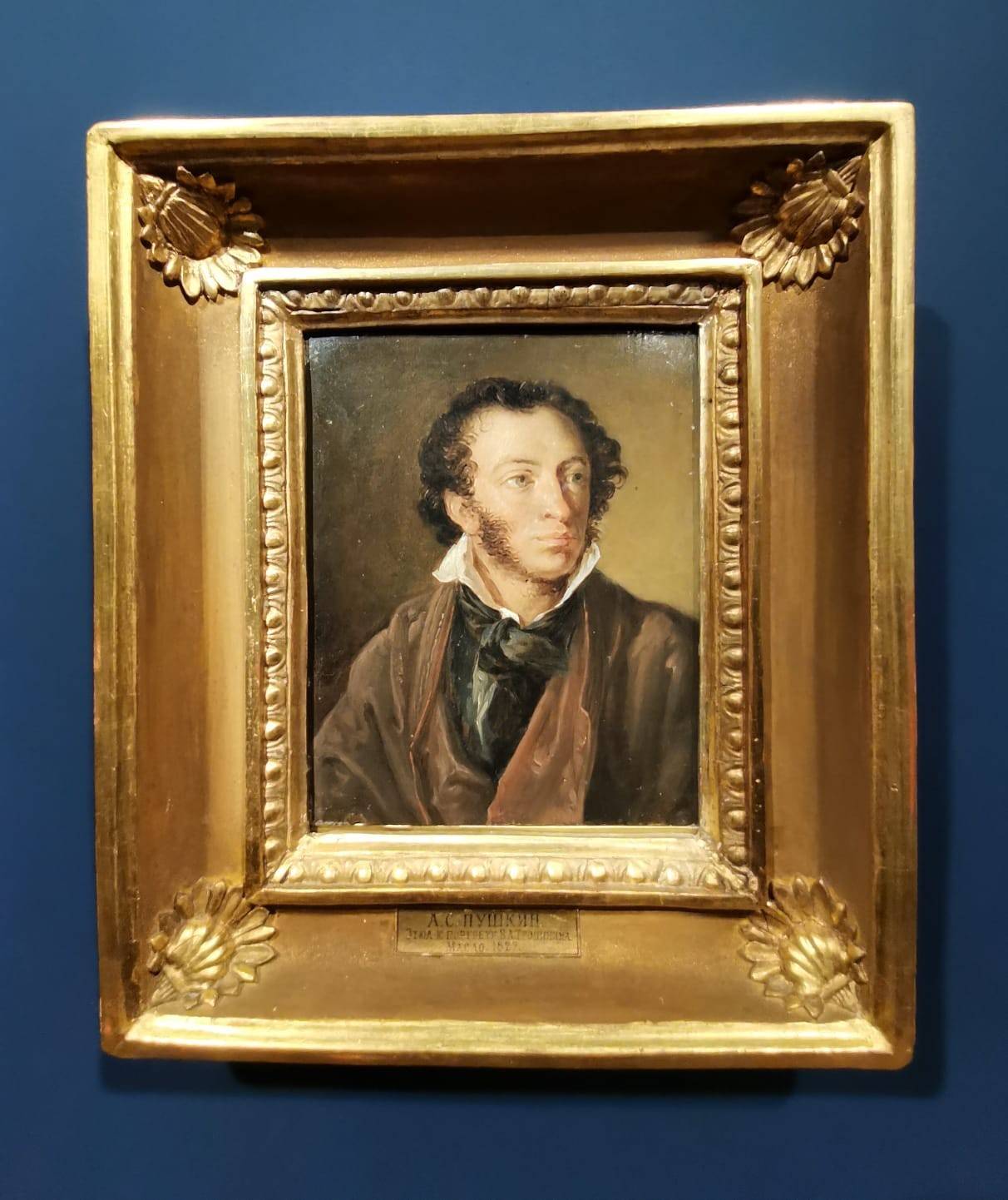 Выставка небольшая, но чрезвычайно информативная, поэтому сопроводительные таблички обязательны к изучению. Так, посетителю предлагается узнать историю создания тропининского шедевра. Заказчиком изображения явился не сам Пушкин, но Сергей Соболевский, библиофил и меценат. В его московском доме Пушкин прожил почти полгода. Акварельный портрет Соболевского, нарисованный неизвестным художником, также можно увидеть среди экспонатов. Уезжая в заграничный вояж, Соболевский повелел сделать миниатюрный вариант, а сам портрет оставил у Елагиных, однако, возвратившись …обнаружил дурно сделанную копию. Искусствоведы по сию пору не пришли к выводу – куда в тот момент делся подлинник и какова степень вины тех Елагиных.