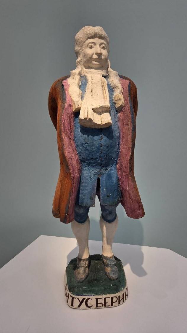 Наше освоение Севера затеялось в галантном осьмнадцатом столетии, когда Витус Беринг, один из «птенцов гнезда Петрова», командовал Первой и Второй Камчатскими экспедициями. Среди экспонатов – деревянная скульптура Беринга, созданная Аделаидой Пологовой в конце 1980-х годов. Фигура героя – несколько гротескна, в духе всех работ Пологовой, предпочитавшей юмор, экспрессию, мимолётность впечатлений, что нелегко даётся ваятелям.