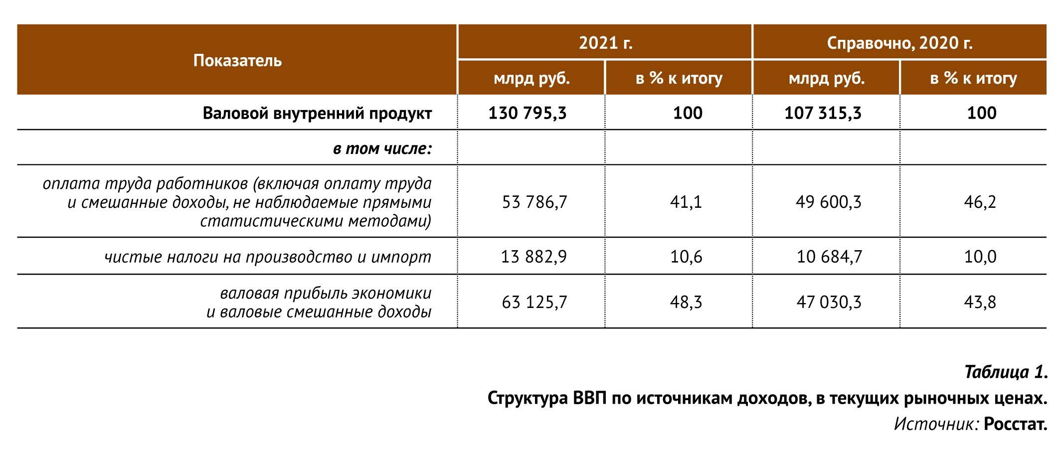 В терминах политической экономии сложившаяся структура общественного воспроизводства показывает, что прибавочный продукт распределяется небольшим числом бенефициаров, а необходимый продукт (менее 50% ВВП) не позволяет ни населению, ни государству (ему на стадии производства достается всего 10% ВВП) выполнять свои базовые функции по расширенному воспроизводству и развитию.