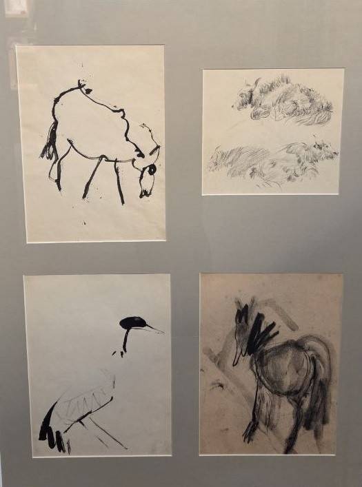 В экспозиции представлены его рисунки 1950-х годов и сразу ясно, что у Зверева была твёрдая рука и отменная техника. С автопортрета, созданного в 1959 году, на нас глядит худой, небритый человек с пронзительными глазами. Другой автопортрет – уже в шляпе. Животные из серии «Зоопарк» - несколько штрихов и – готово. Но эти быстрые линии выверены до миллиметра. Зверев умел зреть объект в целом, не отвлекаясь на частности. Несмотря на свою пугающую расхристанность, а порой и чумазость, Анатолий Зверев нравился женщинам – потому-то на выставке, как и во всём его творчестве, много дамских портретов. Акцент на дивные очи – зеркало души.