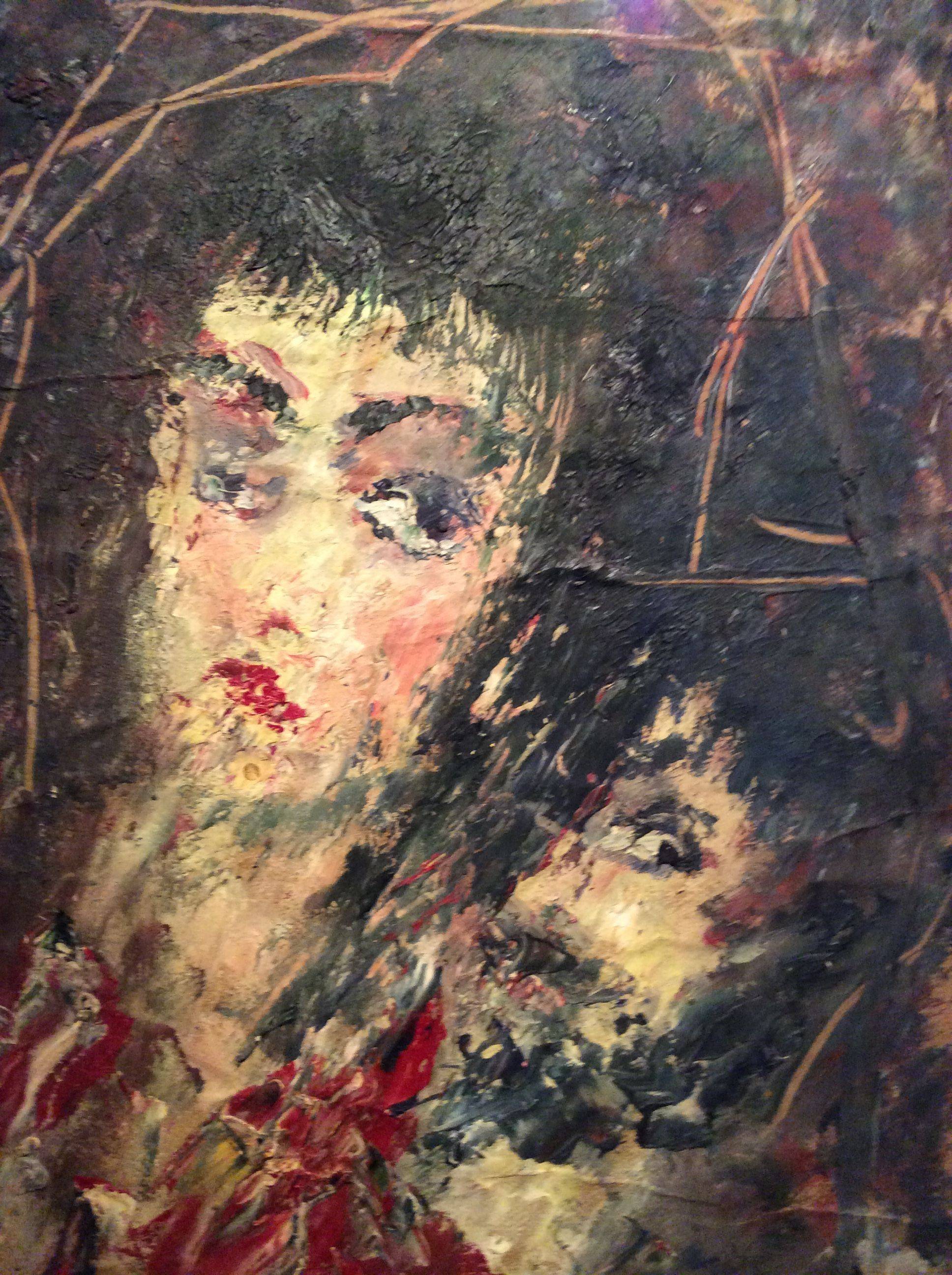 Немалая часть экспозиции посвящена автопортретам. Себя Зверев изображал постоянно – весёлым, грустным, страшным, растерянным. То в зелёной шляпе, то в синей. Наиболее выразителен автопортрет в ушанке – заинтересованно-хитрый взгляд, как у настоящего русского мужичка. На одном из изображений Зверев напоминает Иисуса Христа – узкое лицо, дума, бесконечность. Иногда художник позировал себе в тельняшке – то были воспоминания о службе на флоте.