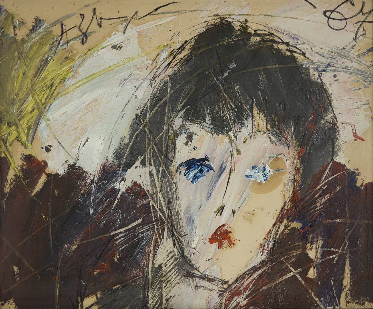 Зверевские картины – одновременно хаос и гармония. В этой пестроте линий всегда угадывается лицо. На портрете актрисы Людмилы Шагаловой мы тут же узнаём все её характерные черты – опущенные уголки глаз, крохотный рот, приподнятые брови. Примечательно и то, что со Зверевым охотно знались представители «официальной» интеллигенции – та же Шагалова имела Сталинскую премию за роль Вали Борц в «Молодой гвардии», а на момент знакомства с художником имела звание Заслуженной артистки РСФСР.