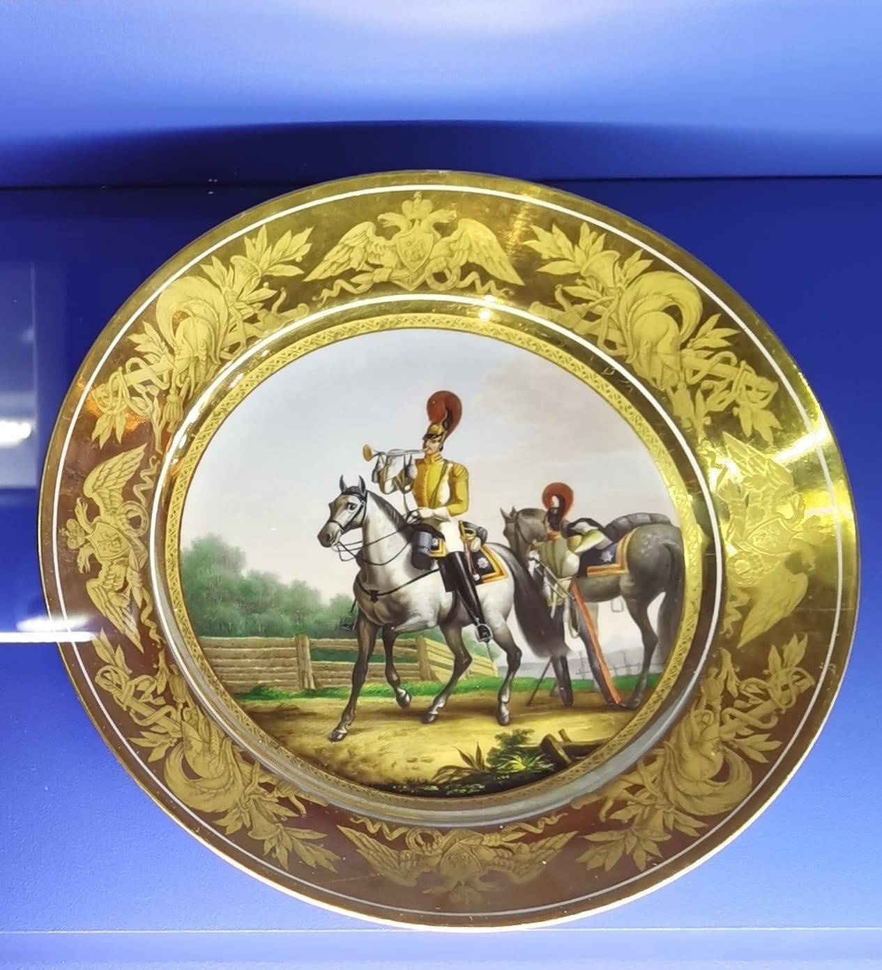 Особое место отведено личным вещам – перчаткам, шкатулочкам, записным книжкам. Несколько витрин заполнены посудой. Государь предпочитал изделия Императорского фарфорового завода – одного из старейших производств в Европе. Созданный по капризу Елизаветы Петровны в середине XVIII века, наш завод ничуть не уступал Мейсену и Севру, а иной раз, опережал их. Здесь же – стекло и хрусталь из царской резиденции Александрия, названной так в честь Александры Фёдоровны. Равнодушная к придворно-светской суете, государыня всё чаще гостила в Александрии, там же позируя художникам средь неоготических меблировок.