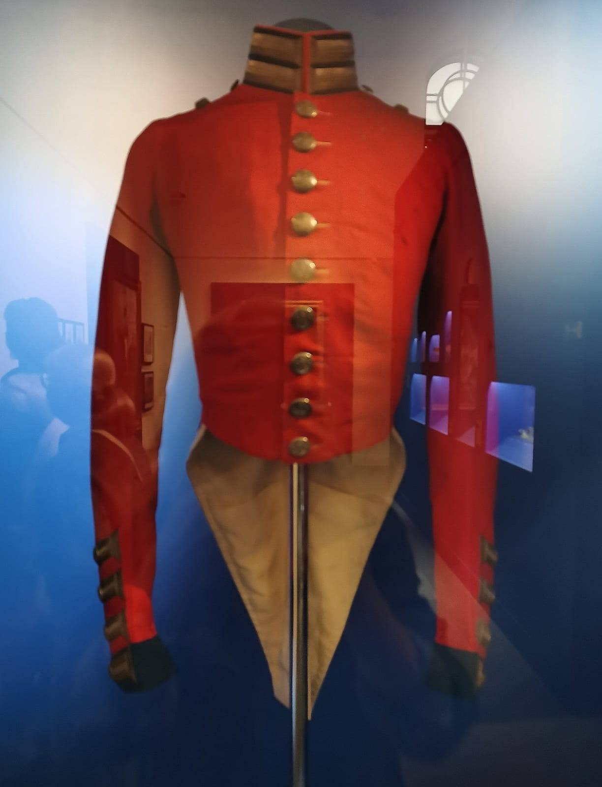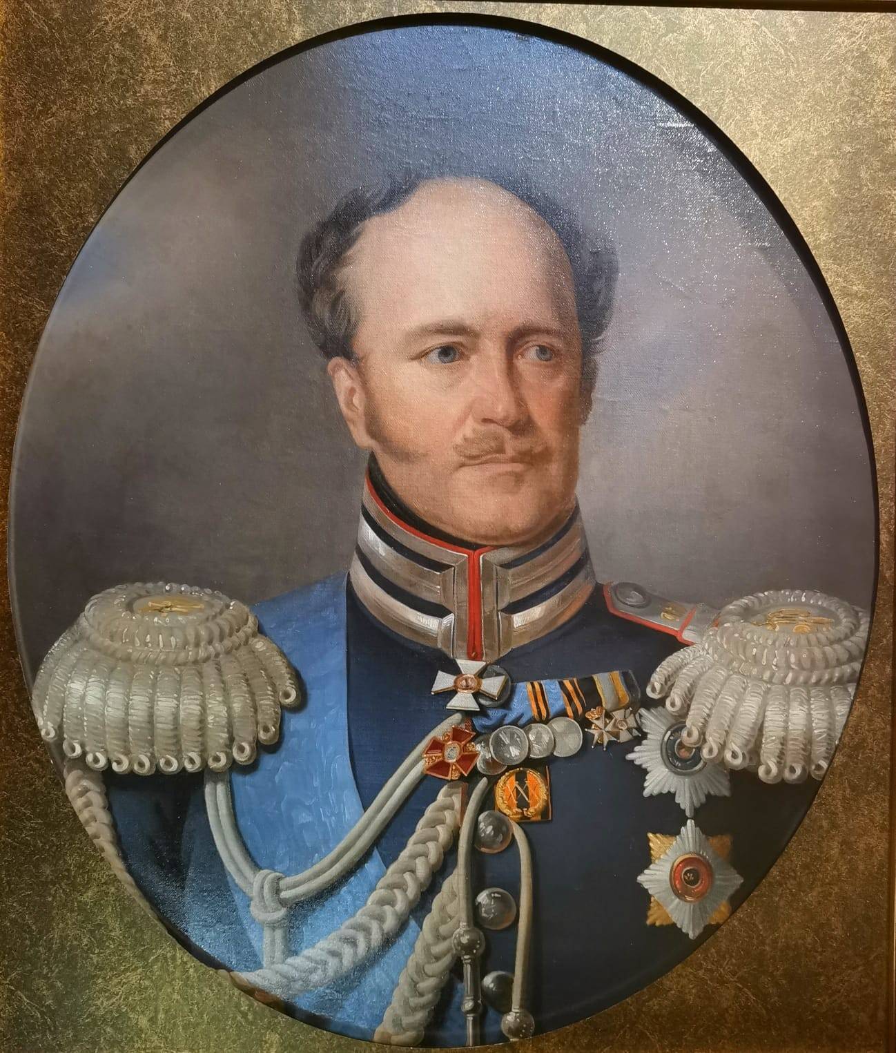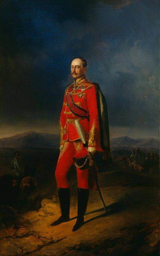 Прекрасен раздел, повествующий о наиглавнейшем увлечении государя – об армии. Тут и портреты, и карты местностей, и образцы оружия. Чуть поодаль - замечательные рисунки Адольфа Ладюрнера, специализировавшегося на воинском бытописании. На одной из выставочных витрин – красный мундир Николая I. Бросается в глаза тонкость талии – государь был статен, величествен и обладал здоровыми привычками. Здесь же – мундирное платье его дочери Ольги – она значилась шефом одного из полков. В России шефством награждали не только мужчин, но и женщин царской фамилии – эту традицию переняли немцы для своих принцесс.