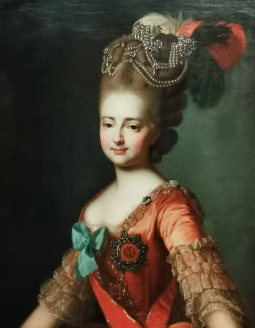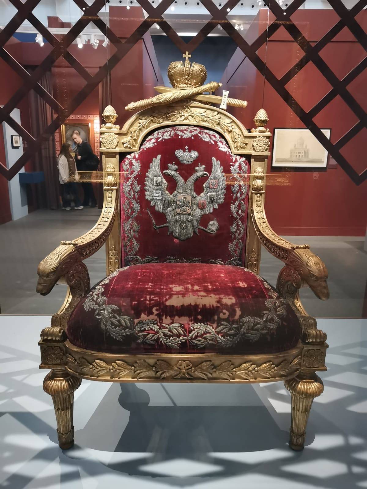 Целый раздел посвящён семейным ценностям Николая. Он был женат на принцессе Шарлотте Прусской, дочери легендарной королевы Луизы. Брак состоялся по любви, что немалая редкость в монаршей среде. После крещения в православную веру Шарлотта стала зваться Александрой Фёдоровной. Вот – парадный портрет императрицы. Она в церемониальном русском платье, сочетавшем боярские мотивы с элементами парижской моды. К облачению полагался кокошник с фатой. Выглядит эффектно - изящный контур, пышные рукава, бесценные вышивки.