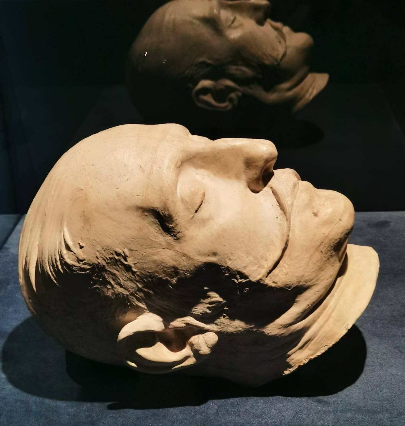 Николай окончательно слёг, и всемерная помощь докторов не привела к выздоровлению. Есть версия, что монарх по факту совершил самоубийство – его добил проигрыш в Крымской войне, когда против России сражался весь коллективный Запад. Дескать, я хочу простудиться – и умереть. Скончался он на своей походной кровати, которую мы видим в экспозиционной нише. Рядом – его шинель. Та, которую он не захотел надеть. Печально-траурная подсветка, рисунок Владимира Гау «Николай I на смертном одре» и посмертная маска.