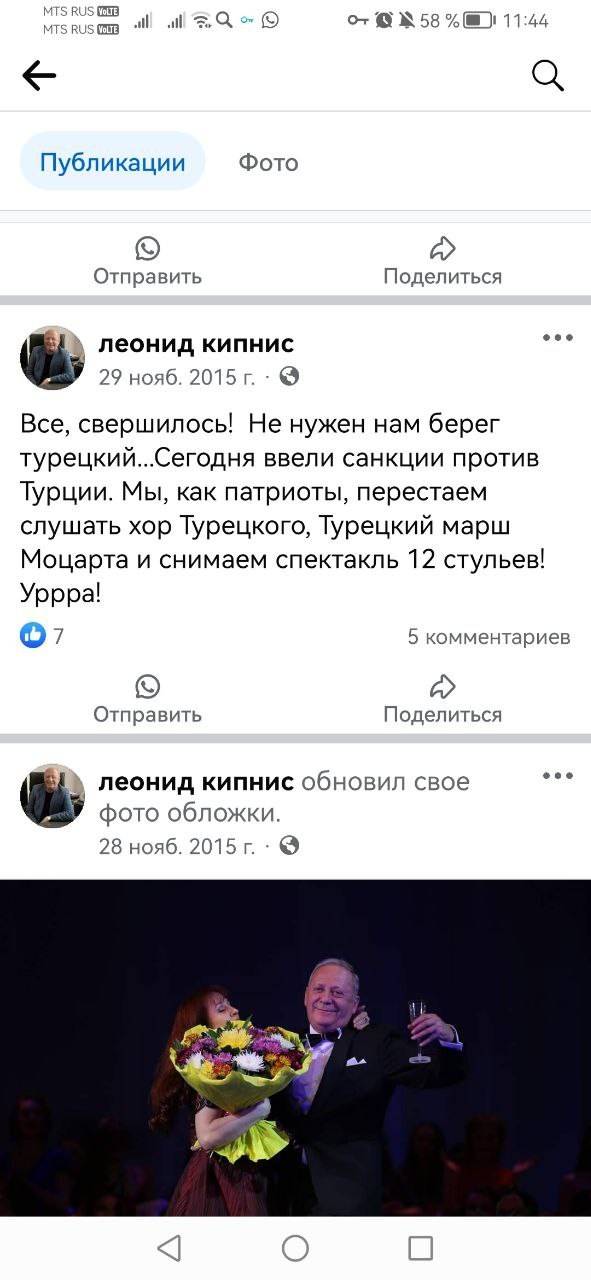 О "нетвойнистских" взглядах директора и худрука театра Леонида Кипниса известно давно. Это проявляется в воздержании от публичной поддержки СВО и участия в мероприятиях по поддержке наших воинов, хотя его подчиненные инициативно участвуют в таковых с самого начала спецоперации. Желающие могут оценить его посты в запрещённой социальной сети Facebook в 2015 году. Например, после того, как Россия ввела торговое эмбарго против Турции после сбития нашего бомбардировщика СУ-24 в небе Сирии, он совсем не умно ёрничает: «Все, свершилось! Не нужен нам берег турецкий…Сегодня ввели санкции против Турции. Мы, как патриоты, перестанем слушать хор Турецкого, Турецкий марш Моцарта и снимаем спектакль 12 стульев! Уррра!».