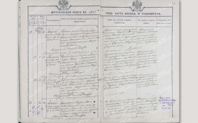 Май 1915 г.: 20 числа родился, 24 числа крестили Алексея