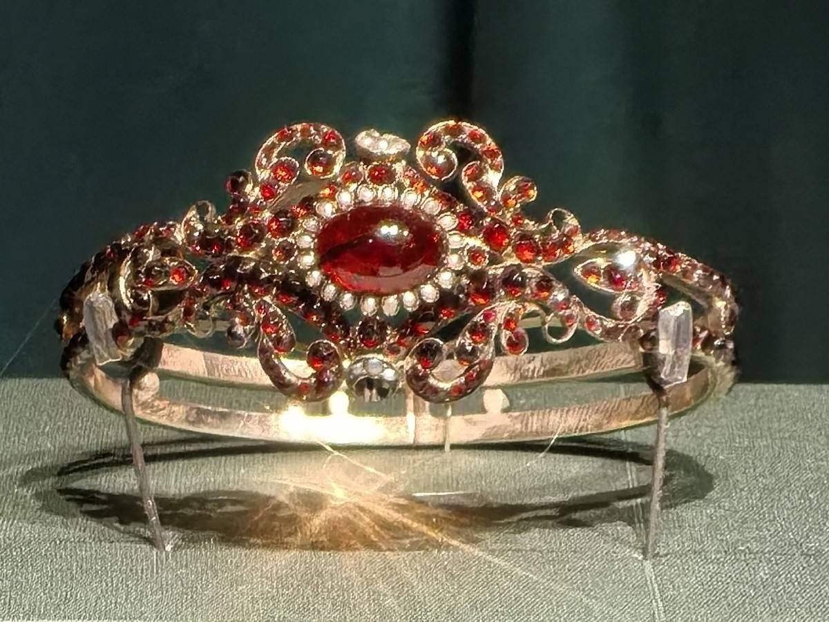 На выставке представлены изысканные пуговицы XVII – XVIII столетий. Тут и гранат, и бирюза, и аметисты, и золото. Когда кафтан приходил в негодность – с него спарывали пуговицы, дабы приспособить к следующему наряду. Тут и пряжки для поясов, и ларцы, и шкатулки, и тиары, и свадебные венки. Вихрь стилей – от витийств рококо и строгости ампира – к змейкам ар-нуво. Обольстительные россыпи – как это влечёт! «Там ликует алмаз, и мечтает опал, / И красивый рубин так причудливо ал», - молвила Анна Ахматова, предвосхищая «ах!» от этой колдовской экспозиции.