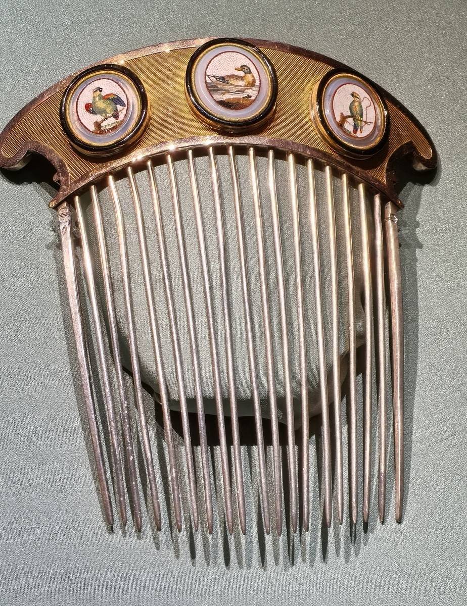 Дивные вещи – свидетельства эпох. Камеи, широко представленные на выставке, сделались популярными в самом конце XVIII столетия, когда началось увлечение древностями, а женские наряды стали похожи на одеяния греко-римских богинь. На протяжении всего следующего века мода на камеи то проходила, то возникала вновь. «Подобного профиля и очертанья лица трудно было где-нибудь отыскать, разве только на античных камеях», - в этой гоголевской фразе – утончённый восторг. На выставке есть и одиночные камеи-броши, и серьги, и массивные ожерелья из камей. На экспозиционных витринах – камеи с изображением Екатерины Великой, Александра I, Иоганна Вольфганга фон Гёте. Также камеями украшались гребни, использовавшиеся дамами для причёсок a-la grecque. На выставке можно увидеть подобные изделия, как отечественного, так и французского производства.