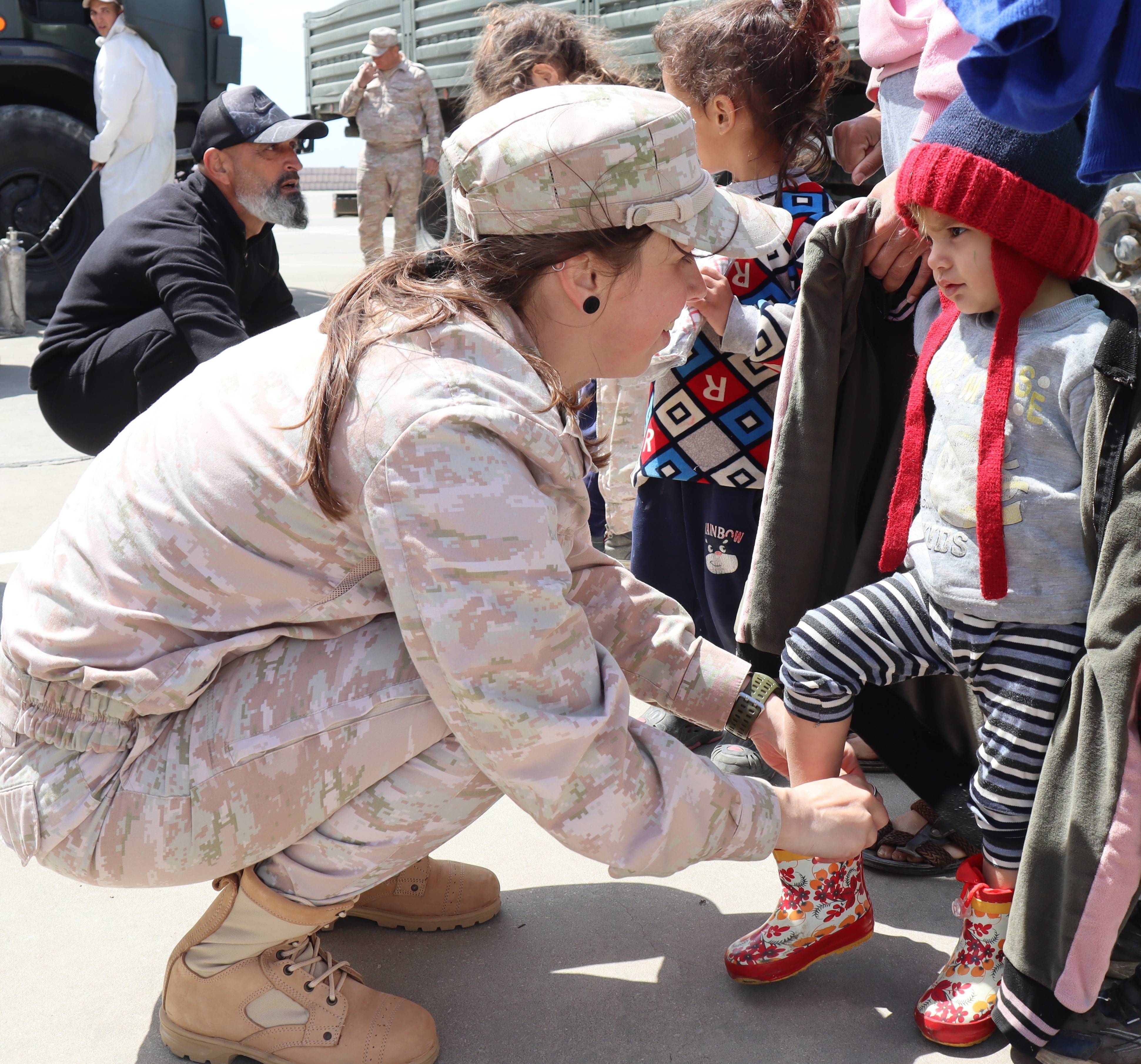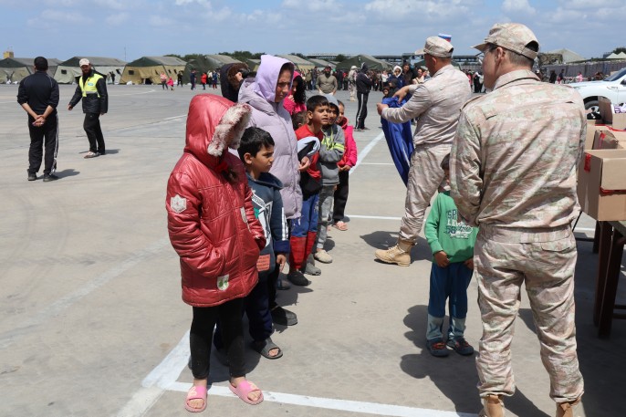 Ну и экстремальные ситуации отрабатываем, как положено. Когда тысячи сирийцев бросились искать защиту за спинами русских солдат, пришлось срочно разворачивать палаточные городки прямо на взлётной полосе. Ничего, справились. Всех приняли и обустроили. Сейчас у них и бани, и кухни, и досуговые центры. Вот и Вы привезли к Пасхе гуманитарные грузы от ГВПУ для сирийских детей».