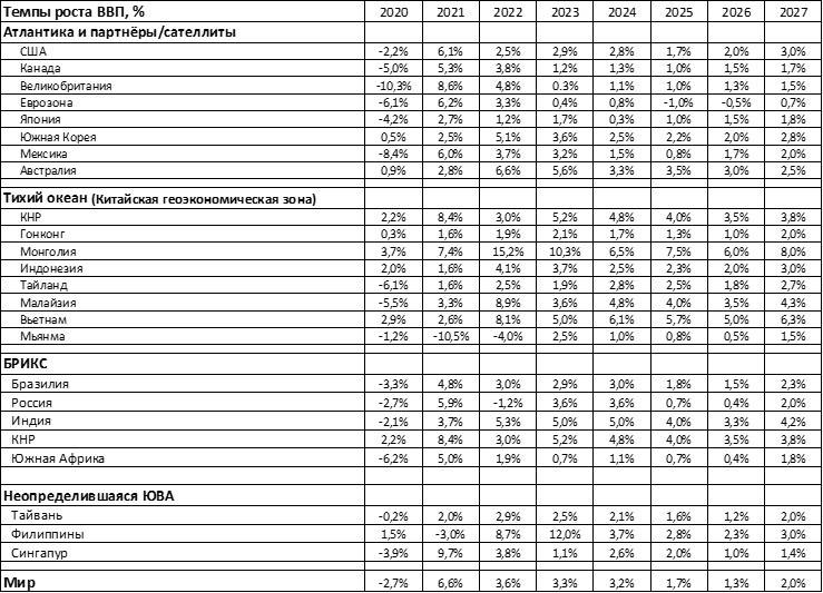 Таблица 4. Темпы роста в основных геоэкономических зонах по странам.