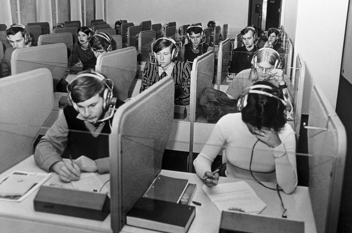 Фото: ТАСС. Студенты в лингафонном классе Московского педагогического института иностранных языков имени Мориса Тореза.