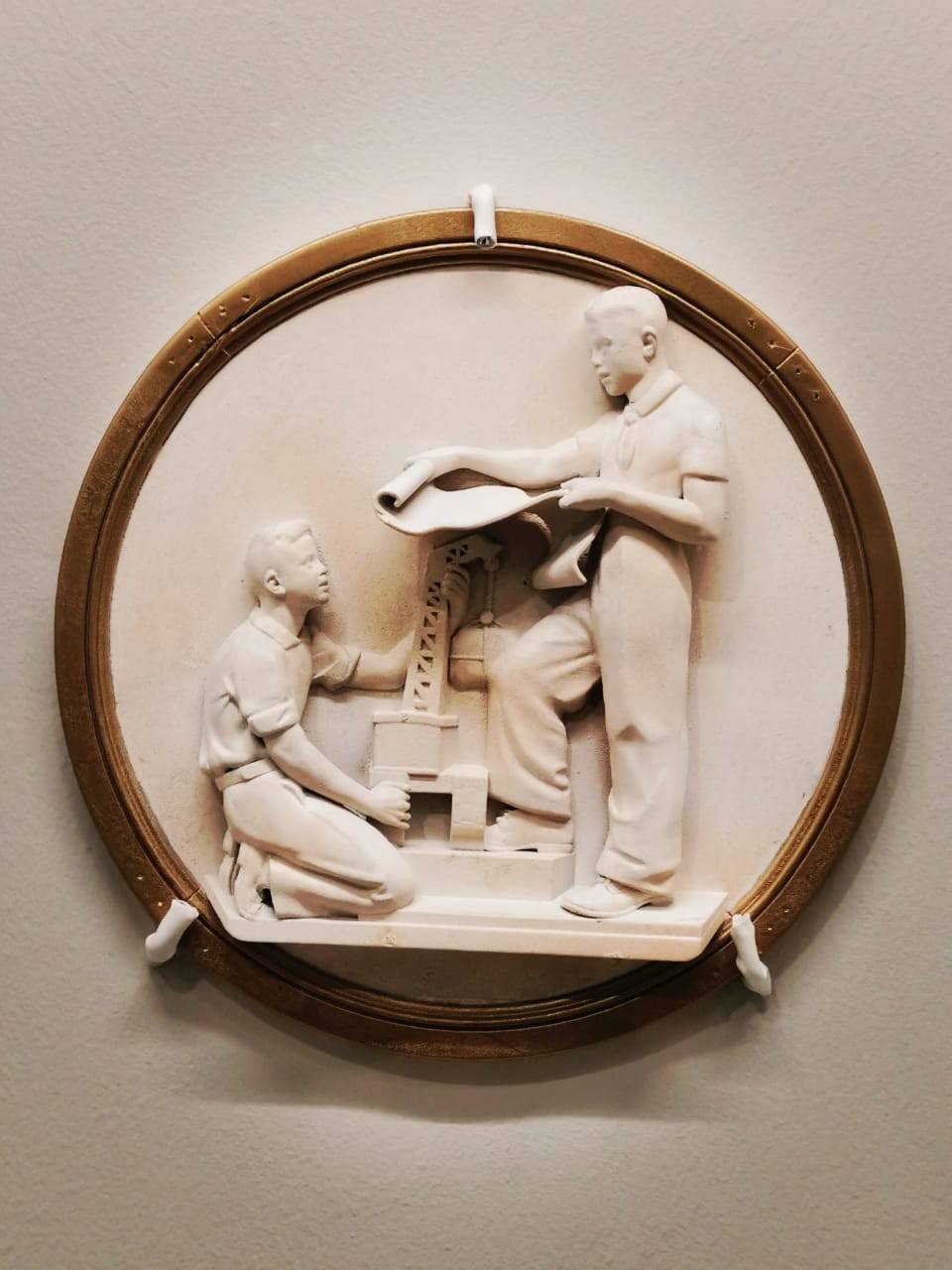 Особое внимание уделено станции «Проспект мира». То было одно из генеральных направлений – из центра в сторону ВДНХ. Главным декоративным элементом стали керамические фризы на пилонах, украшенные медальонами скульптора Георгия Мотовилова. Первоначально станция называлась «Ботанический сад», так как рядом находится ботанический сад МГУ. Предполагалось, что в медальонах будут размещены бюсты русских учёных-естествоиспытателей, однако со временем концепция изменилась. В конечном итоге скульптор обратился к образам садоводов, виноградарей и ботаников. Каждый медальон представлял сельскохозяйственный труд одной из союзных республик. В череде экспонатов - макет одного из фризов.