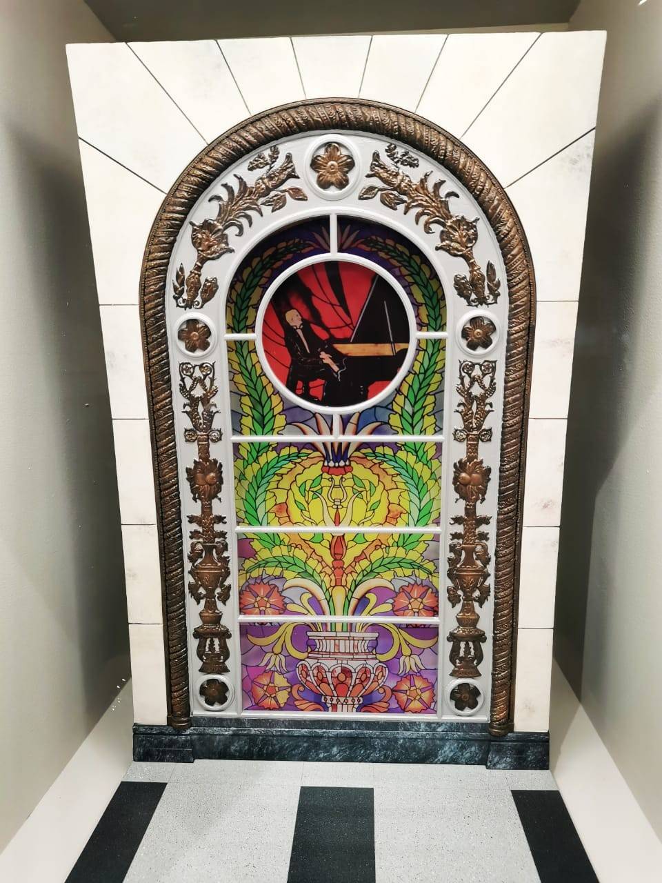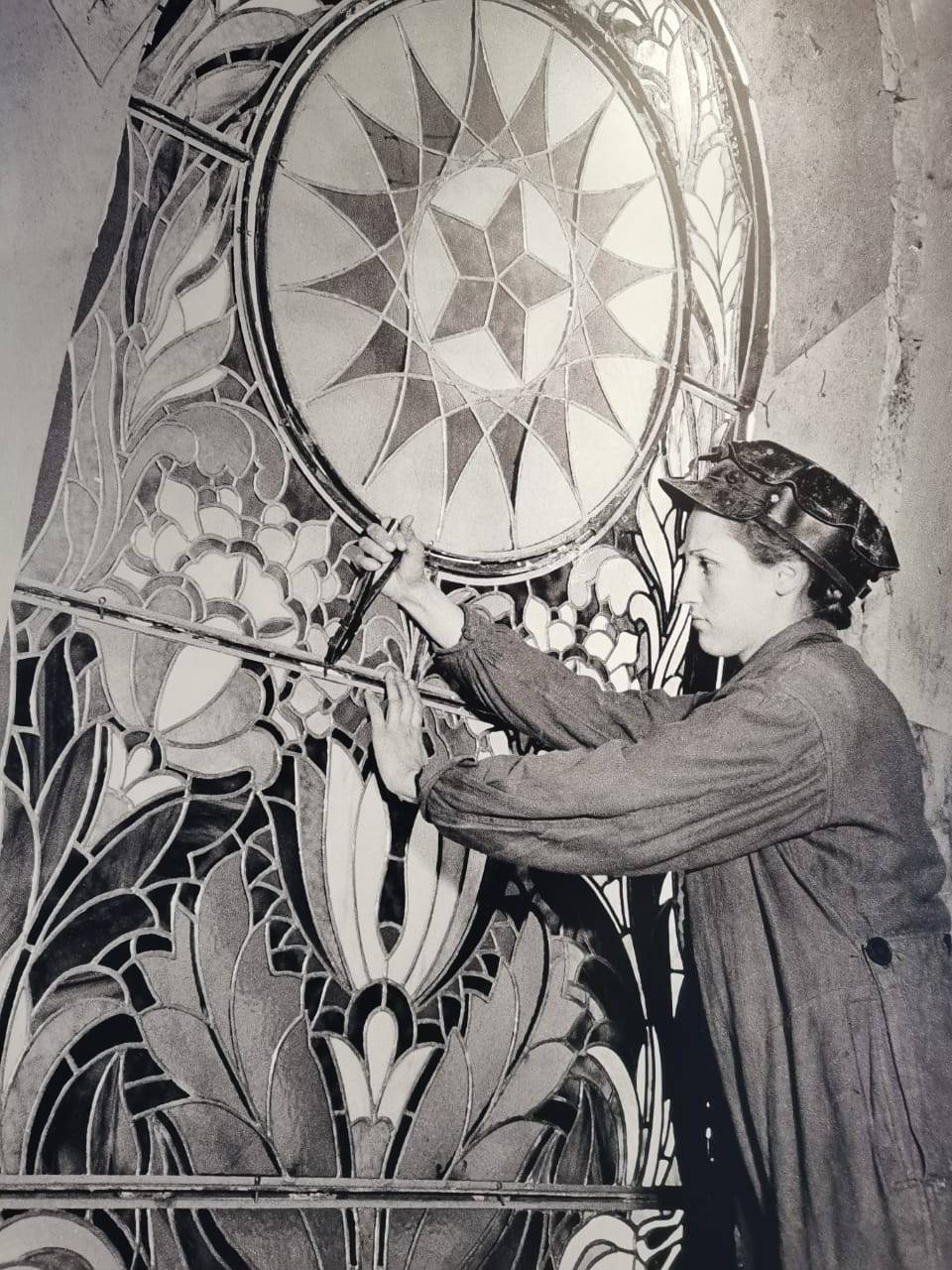 Нарисовать эскизы – полдела, и сами витражи делались в Латвии, на рижском комбинате Māksla. Тогда существовало общесоюзное разделение труда, и в созидании метрополитена участвовали все республики. Дело в том, что в Латвии сохранились и готические постройки, и все ремесленные навыки по созданию витражей. На выставке можно увидеть фотографии, сделанные в Риге – работники собирают витражи по задумкам Павла Корина. Рядом на мониторе – небольшой репортаж рижского телевидения о производимых работах.