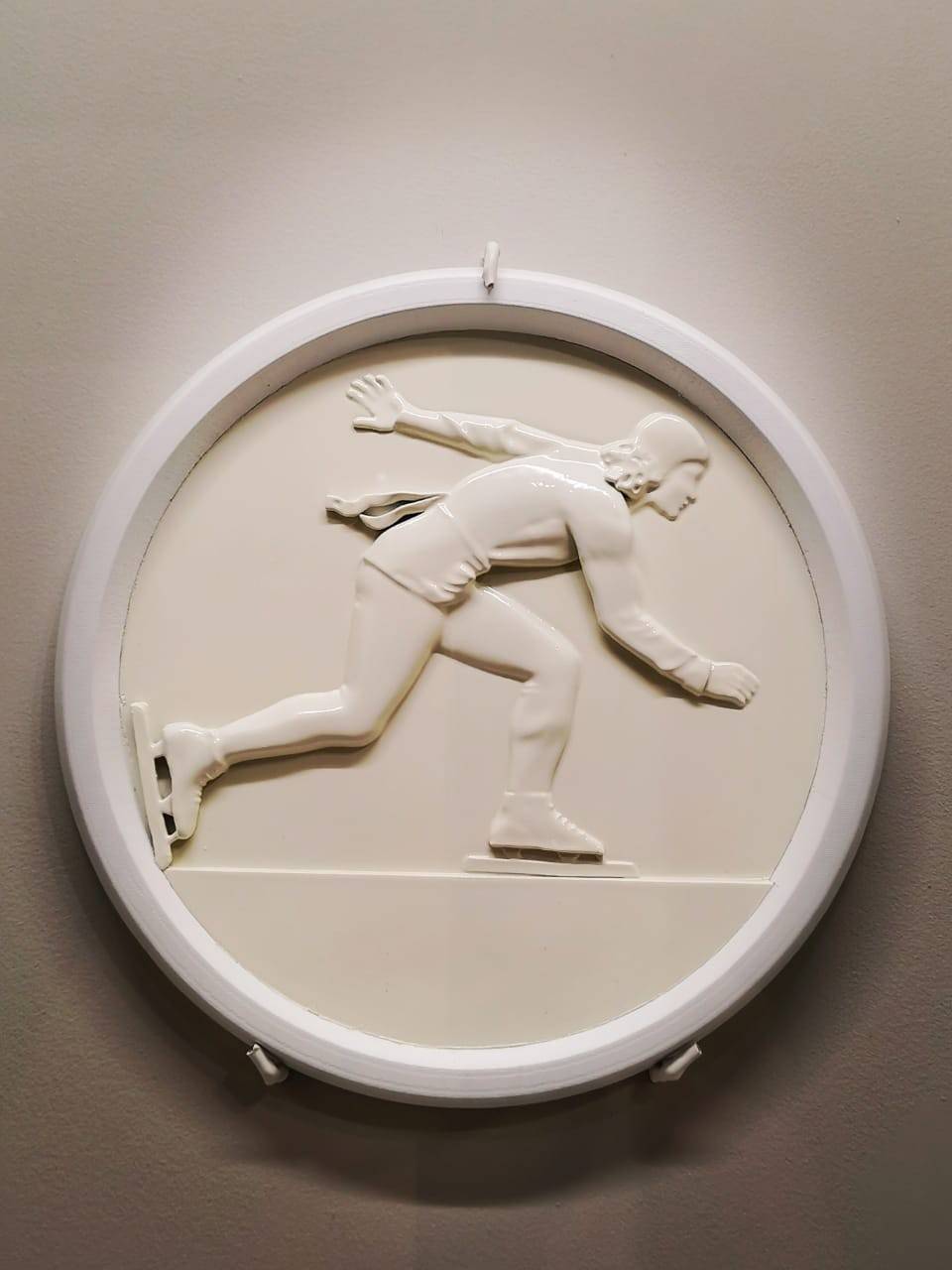 А этот раздел обращён к медальонам - круглым и овальным орнаментам, обрамляющим скульптурное или живописное украшение. Так как это – излюбленная декорация барокко, рококо и ампира, то медальонами увлекались в сталинскую эпоху с её эклектикой. Вот – медальон Елены Янсон-Манизер «Конькобежный спорт» для метро «Динамо». В 1930-х годах одноимённый стадион сделался невероятно популярным – отсюда и спешное строительство станции. На медальонах Янсон-Манизер изображены все виды спорта – красивая, мускулистая молодёжь тренируется во славу Страны Советов. Смесь античности с порохом грядущих битв. Чтобы тело и душа были молоды! Физическое совершенствование в довоенное время – это не моцион, а подготовка к оборонительной сече, и даже изящная конькобежка – тому пример. Наступит время, и она возьмёт в руки оружие.