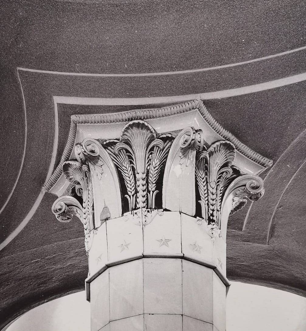 Какое же метро без колонн и пилястр? В 1930-х годах они были строго-лапидарными, в дорическом или даже древнеегипетском вкусе (тому пример – перрон «Кропоткинской»). В 1940-1950-х началось буйство красот, а излюбленными мотивами сделались ионические и особенно коринфские капители. Но сколь разнообразны советские образцы – здесь нет привычного ордера, но всё пронизано фантазиями. Например, бралась коринфская основа, но вместо классических листьев аканта, помещались колосья – символ аграрного плодородия. Перед нами фото одной из таких колонн со станции «Киевская» Филёвской линии. Создала эти капители скульптор-керамист Наталья Данько, работавшая на Ленинградском фарфоровом заводе.