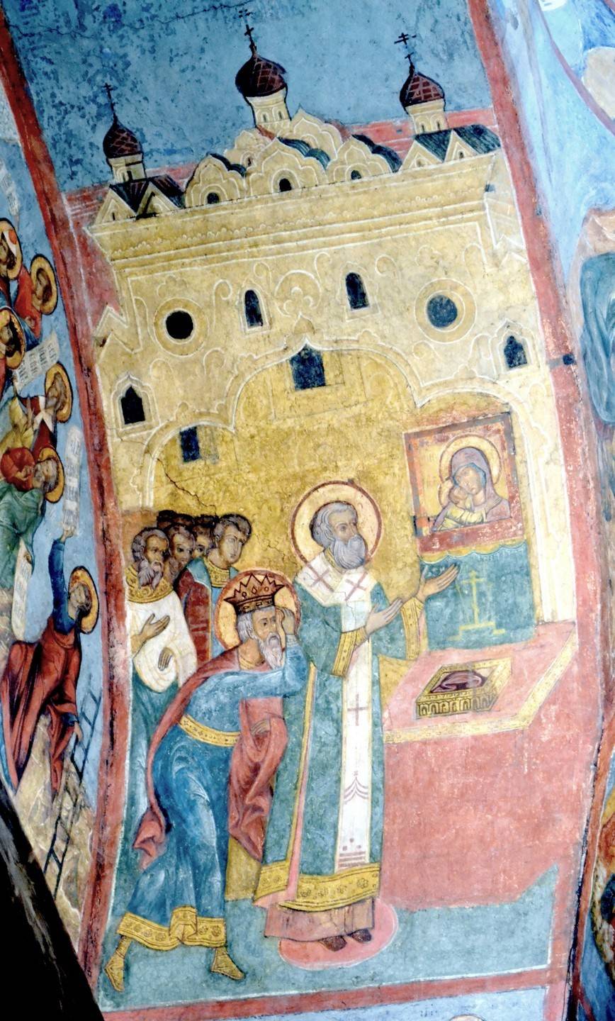 5. Иллюстрация к 1-му кондаку Акафиста в церкви Ризоположения Московского Кремля. Фреска XVII в.