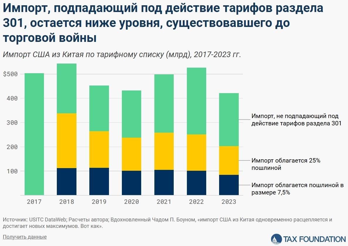 Свои расчёты указанный Центр основывает на статистике двух предыдущих четырёхлеток таможенных пошлин. Напомним, что в первый срок Трамп вводил пошлины на китайские товары 7,5% и 25% примерно на половину товаров по сложной номенклатуре, 25% на импортную сталь и 10% на алюминий из многих стран, 10% на самолёты и 25% на сельхозпродукцию из Евросоюза, а также фиксированные тарифы на стиральные машины и солнечные батареи эффекта статистической погрешности. Администрация Байдена не отменила те трамповские пошлины, а продолжила их модифицировать и наращивать.