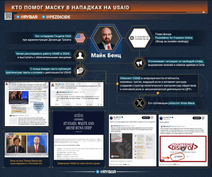 В своём стремлении потопить агентство Маск особенно часто репостил заявления и ролики некоего Майка Бенца — бывшего сотрудника Госдепартамента при администрации Трампа, а ныне главу фонда Foundation for Freedom Online (Фонд за онлайн-свободу, FFO).