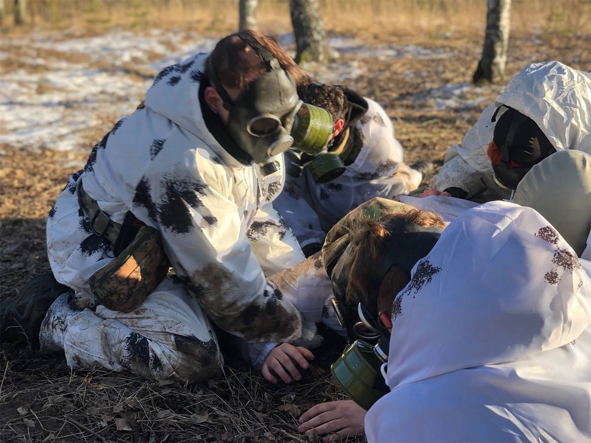 У поворота с Носовихинского шоссе на Бывалино – первые четыре рубежа. Здесь надо поразить мишени из пневматической винтовки, попасть в цель гранатой, выполнить норматив по надеванию противогазов и решить задачу по ориентированию. Дальше все команды поворачивают на юг, к монастырю. В летнем детском лагере «Никита» - «населенный пункт», оставленный противником. Условные «мины», «растяжки». Требуется найти пакет, адресованный данной команде. На этом этапе «Русичи» допустили единственную ошибку – обнаружив «заминированный» пакет и обезвреживая его, «сапер» зачем-то созвал к себе товарищей в «зону поражения. Следует и проверка на «прилеты». Парнишка, недостаточно быстро залегший – «трехсотый». Его эвакуируют в безопасную зону, под руководством доктора Филиппа Евдокимова вполне грамотно оказывают первую помощь.