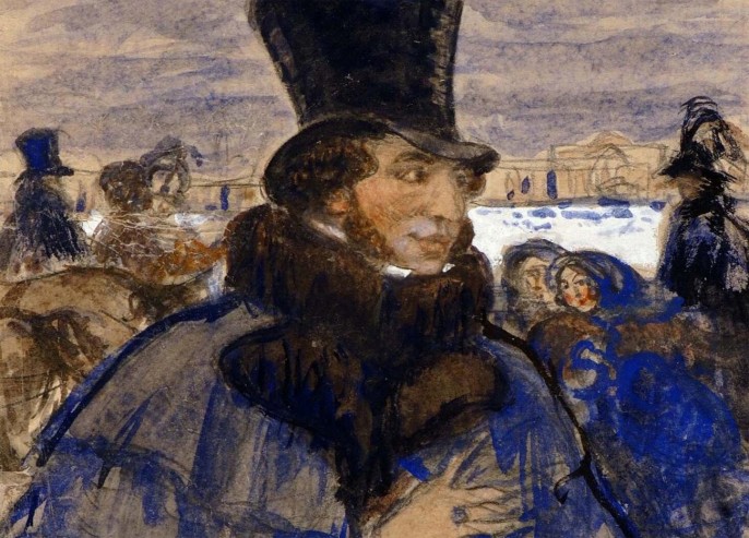 Илл. Борис Кустодиев. А.С. Пушкин на набережной Невы