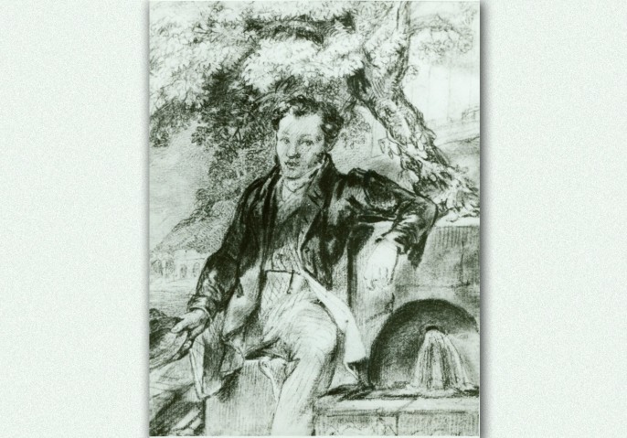 Илл. Валентий Ванькович. Эскиз к портрету А.С. Пушкина. (1828 г.). Местонахождение самого портрета на сегодняшний день неизвестно. Художник был знаком с Пушкиным, и написал его портрет во время своей учёбы в Петербургской академии художеств. Публика портрет не приняла, и до 1863 года он хранился в минском имении художника в Большой Слепянке, был утрачен во время восстания Кастуся Калиновского.