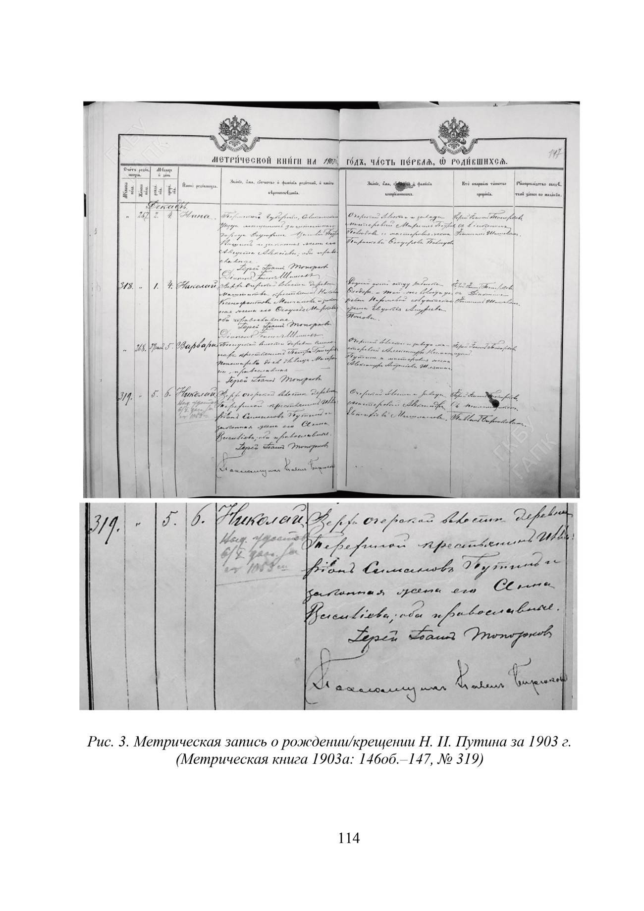 В статье рассматривается вопрос документальной верификации фальшивой родословной Президента России Владимира Владимировича Путина. На основании анализа источников о так называемой «грузинской матери» В. В. Путина – Вере Николаевне Осипашвили (в девичестве Путиной) – авторы исследования, имеющие многолетний опыт архивно-документальной реконструкции генеалогии Путиных, приходят к выводу о сознательной фальсификации истории предков Президента России. Официальная родословная В. В. Путина связана с Тургиновской волостью Тверской губернии, в которой на протяжении нескольких столетий проживали его предки по отцовской и материнской линиям. На материале таких массовых генеалогических источников, как церковные метрические книги, хранящиеся в Государственном архиве Пермского края, были установлены предки В. Н. Путиной, которые проживали в д. Терехино Очёрской волости Пермской губернии в XIX – начале XX вв. Учитывая тот факт, что фамилия «Путин» является достаточно распространённой в России, иностранными журналистами была придумана гипотеза о якобы уральских корнях Владимира Путина. Однако в ходе архивно-поисковой работы с первоисточниками показано, что никакой близкой родственной связи между тверскими Путиными и пермскими Путиными нет. Фейковая родословная В. В. Путина является наглядным примером такого феномена, как русофобия, используемого врагами России для дискредитации главы государства.
