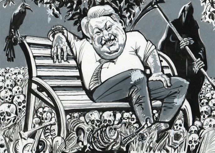 "На протяжении многих лет заслуженный художник России Геннадий Животов каждую неделю публикует на первой полосе газеты "Завтра" свои графические работы. В 1990-е годы практически все они были посвящены образу и фигуре первого президента Российской Федерации Бориса Николаевича Ельцина, представляя собой своего рода графическую ельциниану.