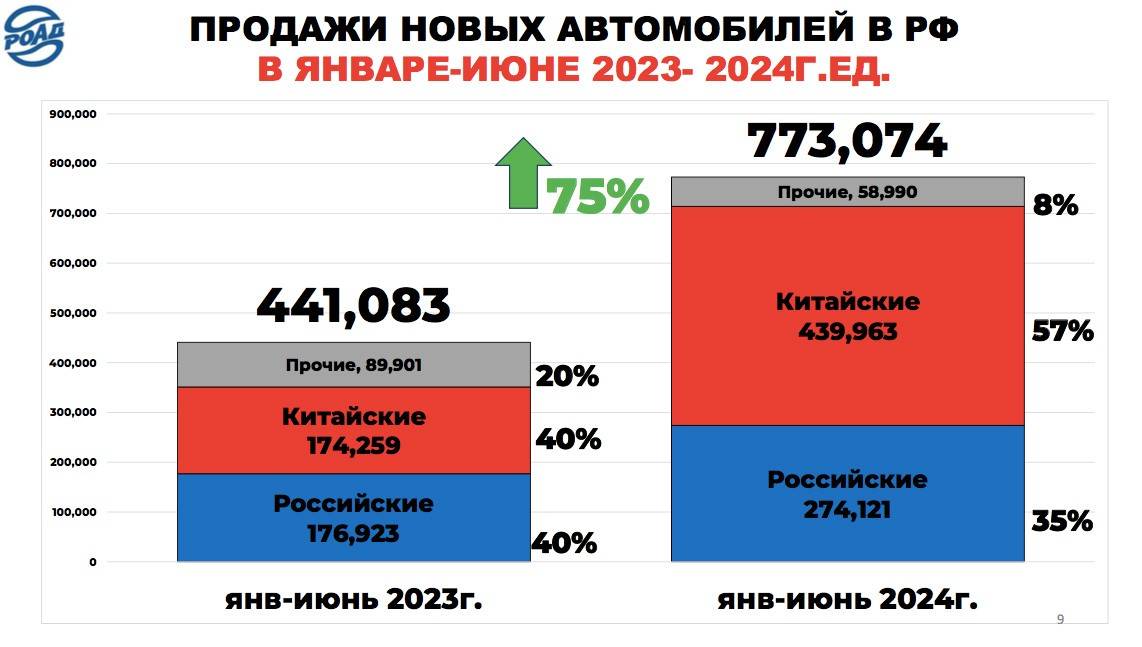 Да, еще один важный аспект – больше 50% рынка новых легковых автомобилей в России по итогам первого полугодия 2024 года занимают китайские автомобили, чья доля на 2021 год не достигала даже 10%.