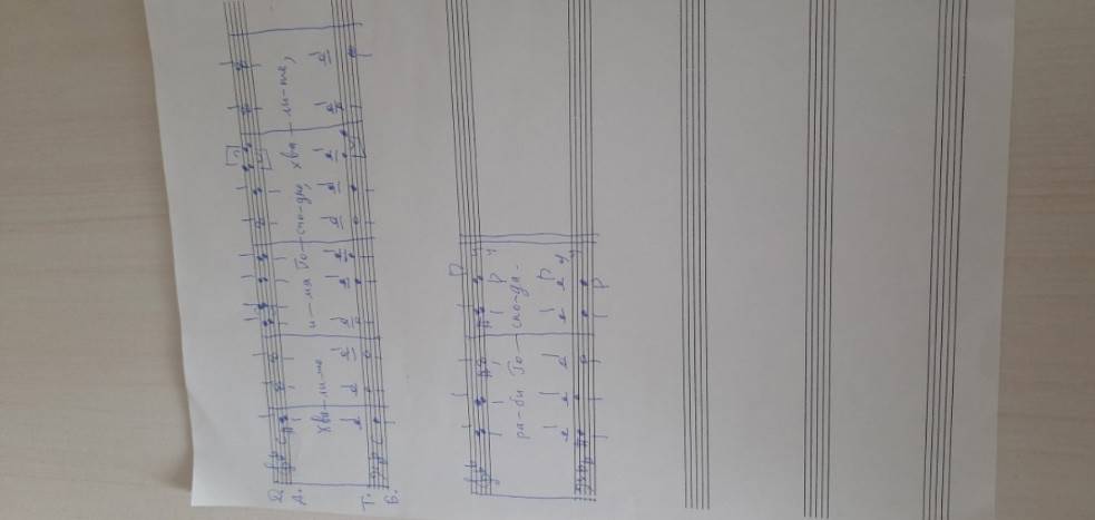Что сказать по сему поводу? Широчайшее использование обиходных шаблонов того времени. Шаблонна мелодия, похожая не на классический знаменный роспев, а на позднейшие обиходные популярные напевы. Шаблонна и гармония (о чём будет речь ниже). И никаких параллелизмов, равно как и пустот. Но если с параллелизмами всё понятно – часть теноров и басов могла – вольно или невольно – продублировать верхнее ведение голосов в терцию октавой ниже – то как и откуда взялись пустоты?
