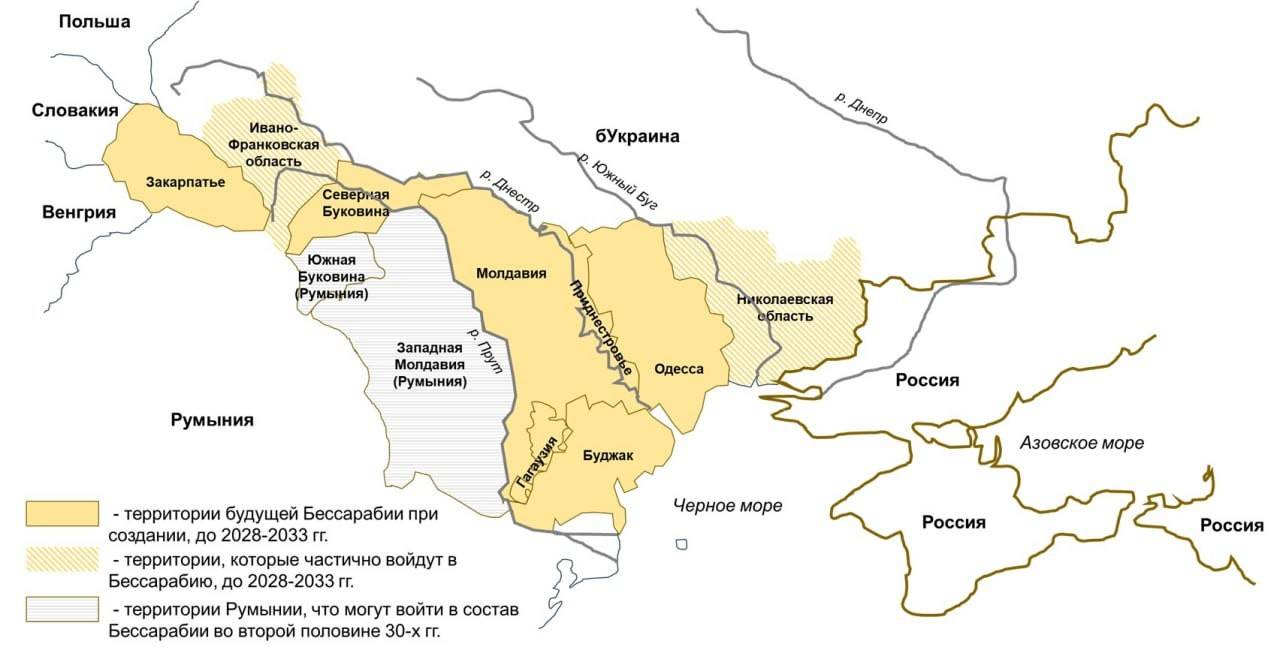В 30-е гг. к Бессарабии могут присоединиться другие земли бУкраины, где население будет переходить на самоидентификацию русины, но не малороссы, а также исторически молдавские земли, что сейчас входят в состав Румынии: Западная Молдавия, Южная Буковина, по мере смены идентичности местным населением, но это уже зависит от многих факторов и процессов.
