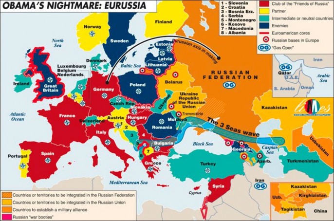 В 2009 году авторитетный итальянский ежемесячный журнал Limes, пишущий на геополитические темы, опубликовал карту будущей Европы под заголовком «Ночной кошмар Обамы: EuRussia». Прогноз пока не сбылся. Однако всё идёт к тому, что Украине будет оставлена именно та территория, которую 15 лет назад ей отвели итальянские эксперты.