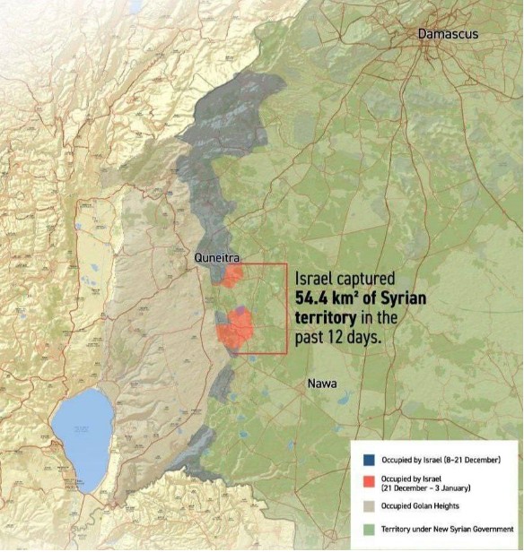 На карте – земли Сирии, захваченные Израилем после падение режима Асада: