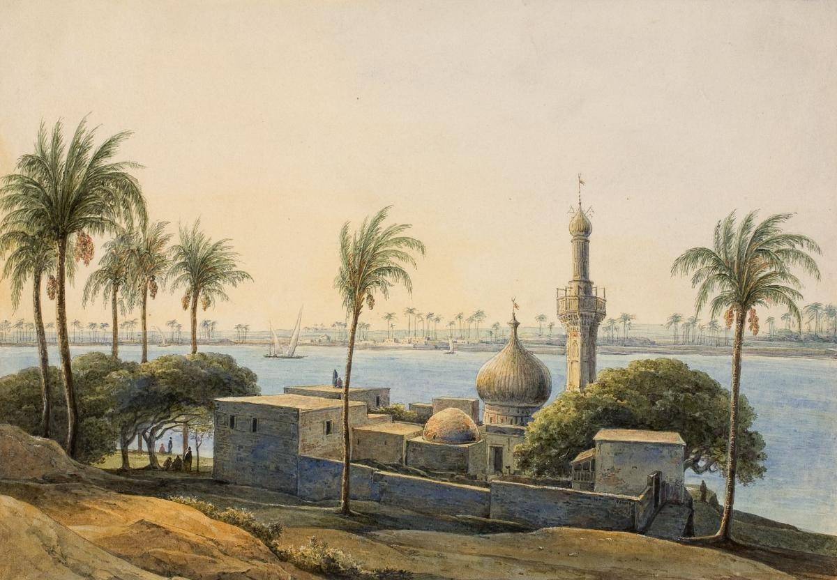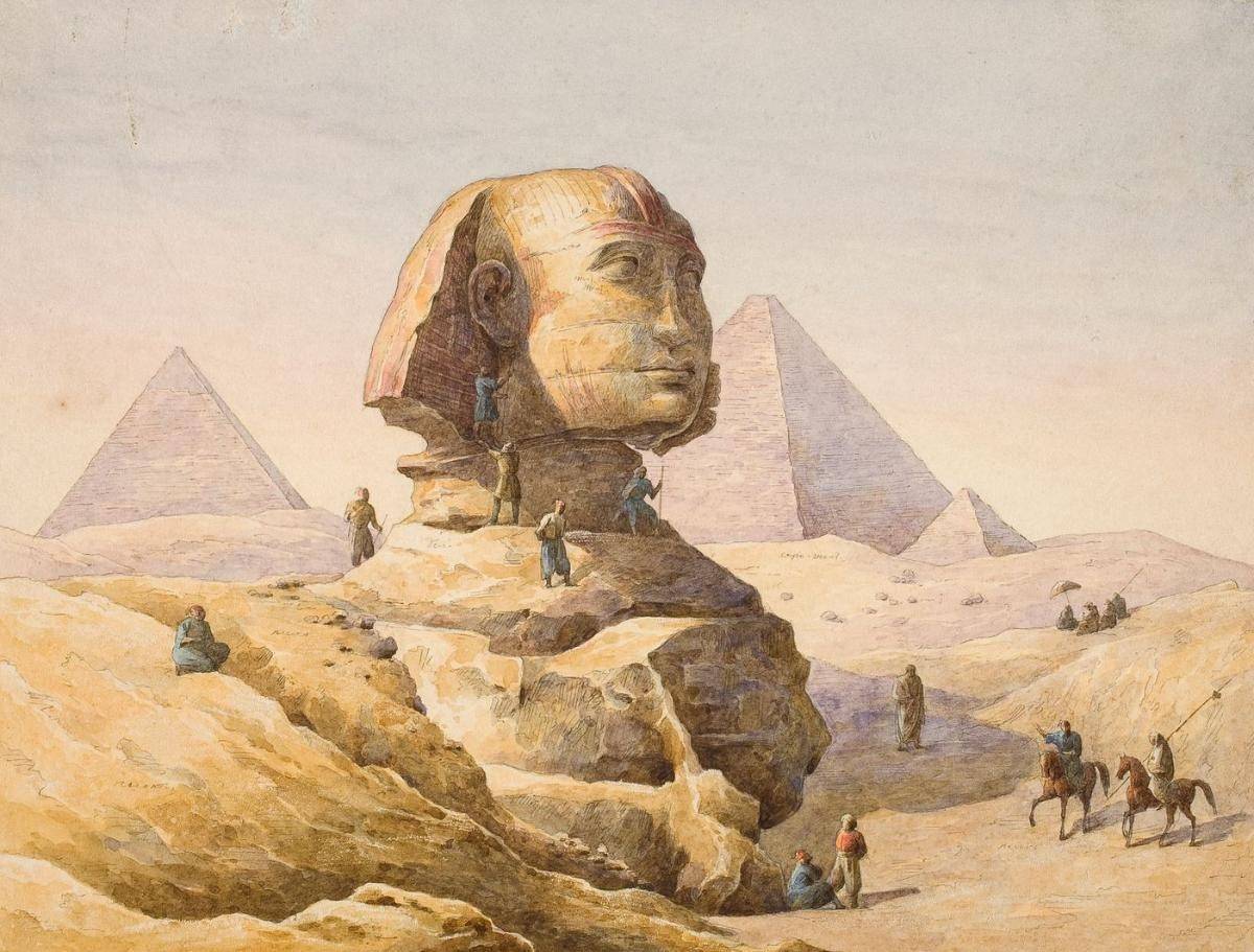 Египет – это загадочная притягательность и одновременно ужас перед заупокойной магией. Древнеегипетские чудеса открылись в начале XIX столетия – тому способствовали походы Наполеона и труды Жана-Франсуа Шомпольона. Увидеть пирамиды – настоящий туристический шик, а кому сие было недоступно, тот довольствовался ведутами. «Сфинкс» Григория Чернецова – технически отличная, но суховатая вещица, как раз для того, чтобы соблазнить покупателя. На выставке можно увидеть «Мечеть Гама Абу Мандур в Розетте на берегу Нила» Никанора Чернецова и ещё несколько его акварелей на тему египетских жемчужин.