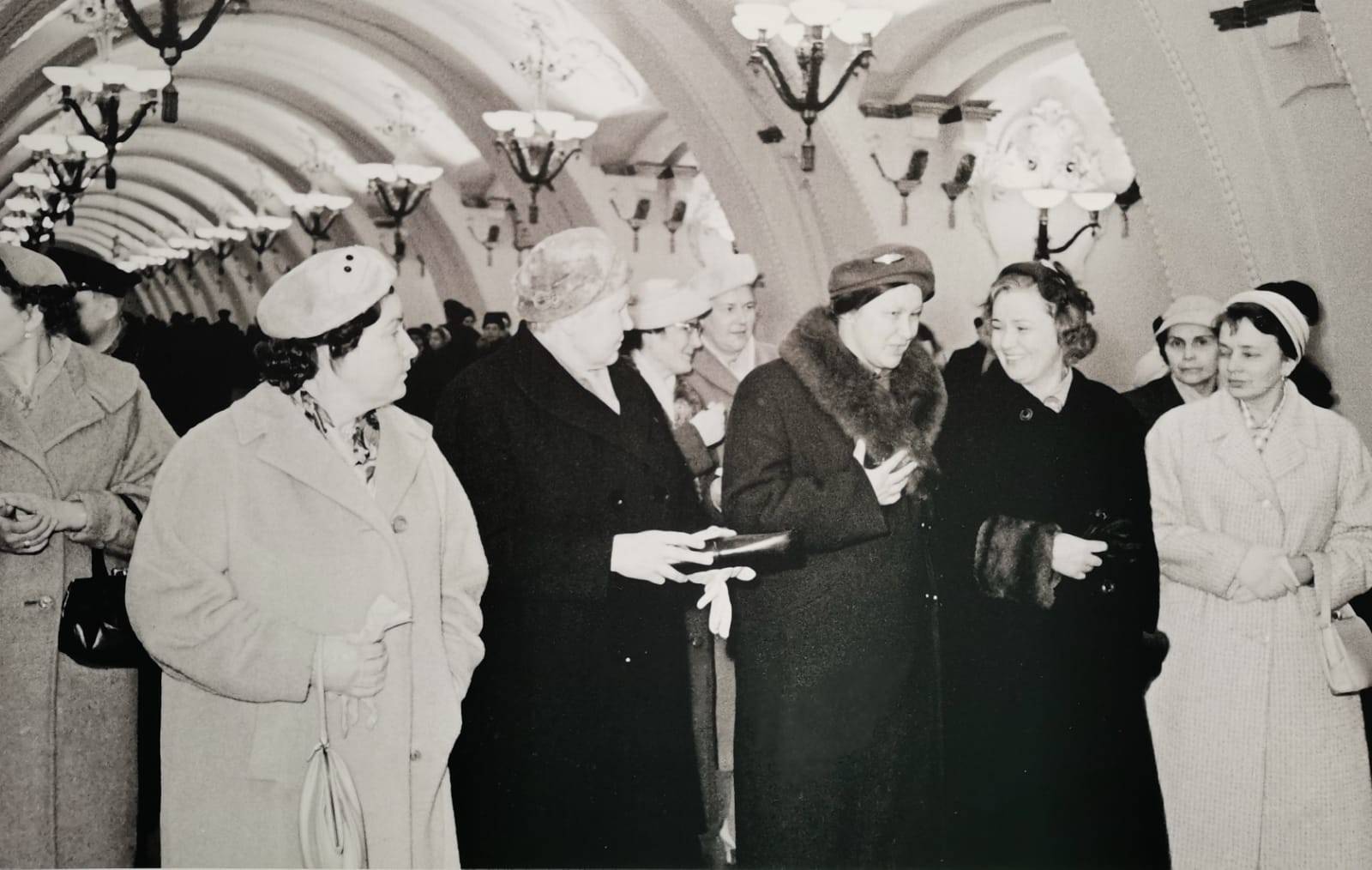 Ещё одна ложь – это «халат» Нины Петровны Хрущёвой на встрече с американским лидером и его женой. Один из доводов, который постоянно используют лжецы — это фотография блистающей Жаклин Кеннеди и простецкой Нины Кухарчук-Хрущёвой: «Вот! Советский быт оказывался настолько гнусным, что и первую леди догадались выпустить в домашней одежде!» Во-первых, это вовсе не халат, просто в большинстве Интернет-изданий, книг, журнальных публикаций фотокарточка обрезана, и мы наблюдаем лишь громоздкое тулово миссис Хрущёвой на выигрышном фоне статной Жаклин. Отыскать полномасштабную картину не составляет труда и перед нами оказывается иная правда — у жены царя Никиты шёлковый костюм, созданный по моде того периода.