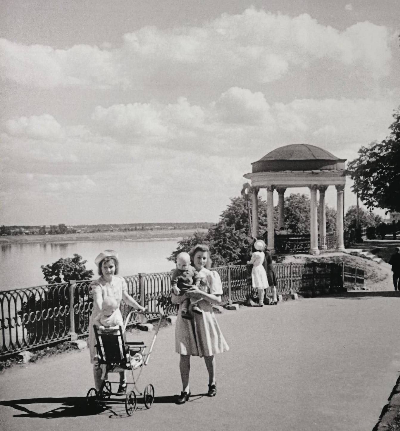В экспозиции – несколько интереснейших фотографий, сделанных мастерами ТАСС. Допустим, «На ярославской набережной» 1947 года. Солнечный летний день, река, беседка и женщины, одетые со всем кокетством в приталенные летние платьица. А вот – «Покупательницы возле прилавка» в текстильном магазине начала 1950-х. Тогда старались отобразить мануфактурное изобилие – пусть бы на фото. Не было никакой лакировки действительности, но жила мечта о том, что вслед за победой придёт и благополучие. Вторая половина 1950-х – эпоха открытости, поэтому ничего удивительного в том, что явлена «Представительница иностранной делегации в магазине». На снимке – приметная женщина с подведёнными глазами на фоне товаров. Надо отметить, что в 1950-х годах отнюдь не весь Запад шиковал, и, за исключением, пожалуй, Америки, буржуазные страны жили не так, чтобы уж очень роскошно. Тут же – спортсменки, работницы, служащие. Многообразен советский мир! И все люди улыбаются, при том, что смех – не натужен.