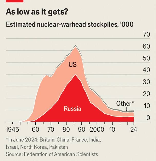В соответствии с последовательными договорами о контроле над вооружениями мировой ядерный арсенал сократился с пикового значения в более чем 70 000 боеголовок в 1986 году до примерно 12 000 сегодня. В 2009 году Барак Обама говорил о стремлении к «миру без ядерного оружия». Еще в октябре 2022 года, когда война на Украине уже бушевала, обзор ядерной политики администрации Байдена (NPR) все еще цеплялся за идею «сокращения роли ядерного оружия в стратегии США».