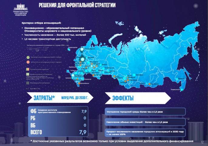 Нельзя не заметить, что в упомянутых выше инициативах содержится отчетливая полемика с утвержденной правительством в 2021 году стратегией социально-экономического развития страны до 2030 году, предусматривающей, наоборот, «сгон» населения в несколько десятков крупных агломераций. По презентации концепции «Агрессивное развитие инфраструктуры», представленной в апреле 2021 года первым вице-премьером Маратом Хуснуллиным, к 2030 году в 41 городской агломерации должны жить более 120 млн человек. На всю прочую территории страны, соответственно, останется не более 20 – 30 млн чел. Все эти планы с взятыми из них картами и диаграммами я подробно описывал 5 ноября 2021 года в статье на сайте «Завтра».