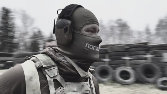 Теперь настала очередь стрелять сотрудникам. Народа было немного: высокий парень в камуфляже «мох», с поясом и бронежилетом оливкового цвета, в балаклаве с надписью «полиция»; очень высокий и широкоплечий, атлетически сложенный офицер в камуфляже «мультикам» и зелёном бронежилете, также в балаклаве, с набедренной кобурой; сотрудник в штанах «мультикам» и в зелёной пуховке, в оливковом бронежилете, и сотрудник, полностью облачённый в броню и снаряжение расцветки «мультикам». Для занятий «в поле» они использовали своё личное снаряжение, чтобы не привлекать излишнего внимания. Опознавательных знаков и патчей ни на ком не было.