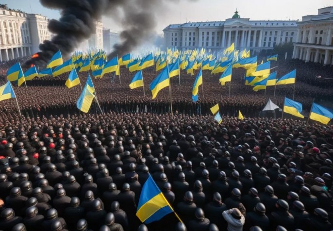 С поправкой на время, место и эпигонскую суть режима, на Украине сложилась аналогичная ситуация. Народ слишком атомизирован, запуган и подконтролен нацистскому режиму, чтобы суметь самостоятельно организоваться и выступить против власти, ведущей войну до последнего украинца. Различные элитные группировки в принципе готовы побороться за место Зеленского, но ни одна из них не имеет надёжной силовой опоры, способной обеспечить переворот и удержание власти.