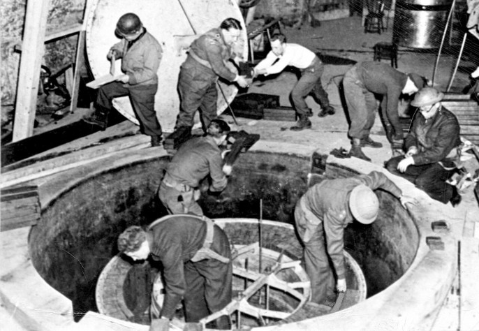 На фото: демонтаж немецкого экспериментального ядерного реактора в Хайгерлохе, в 50 км к северо-западу от Штутгарта, апрель 1945 года