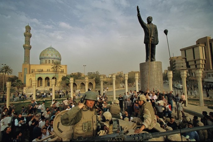 На фото: американские военные в центре Багдада (войска США в 2003 году вторглись в Ирак, низвергли статую Саддама Хусейна, с чего и начался там социально-политический хаос)