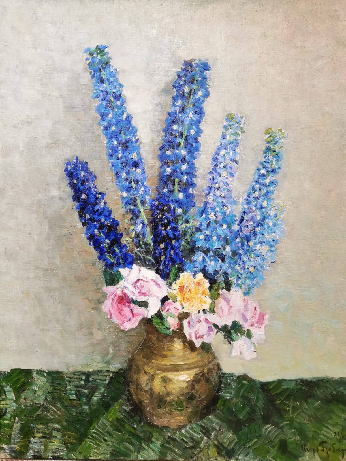 К слову, о букетах! Вот – эффектные цветы от самого Игоря Грабаря. В годы войны Грабарь возглавил бюро экспертов, составлявших списки шедевров немецких музеев. Эти произведения должны были поступить в качестве трофеев, как закономерная компенсация за урон, нанесённый фашистской армией и её союзниками. Эта деятельность побудила Грабаря создать в 1944 году Институт истории искусства и охраны памятников архитектуры при Отделении истории и философии Академии наук СССР. Не забывал художник и о живописи – тому пример великолепный букет. Букет Победы!