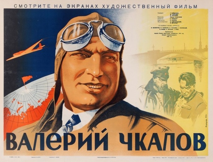 Итак, лента «Валерий Чкалов» (1941) режиссёра Михаила Калатозова, вышедшая через три года после гибели прославленного пилота. Байопик, как это нынче именуют. Разумеется, биография сильно приглажена и частично изменена — в угоду искусству. Метод соцреализма показывал не сугубую действительность, а идеал, то, к чему надо стремиться. Советского человека в его развитии! Лётчик Валерий Чкалов проходит путь от лихача до осознанного гражданина, понимающего, что рисковать надо лишь тогда, когда есть великая цель.