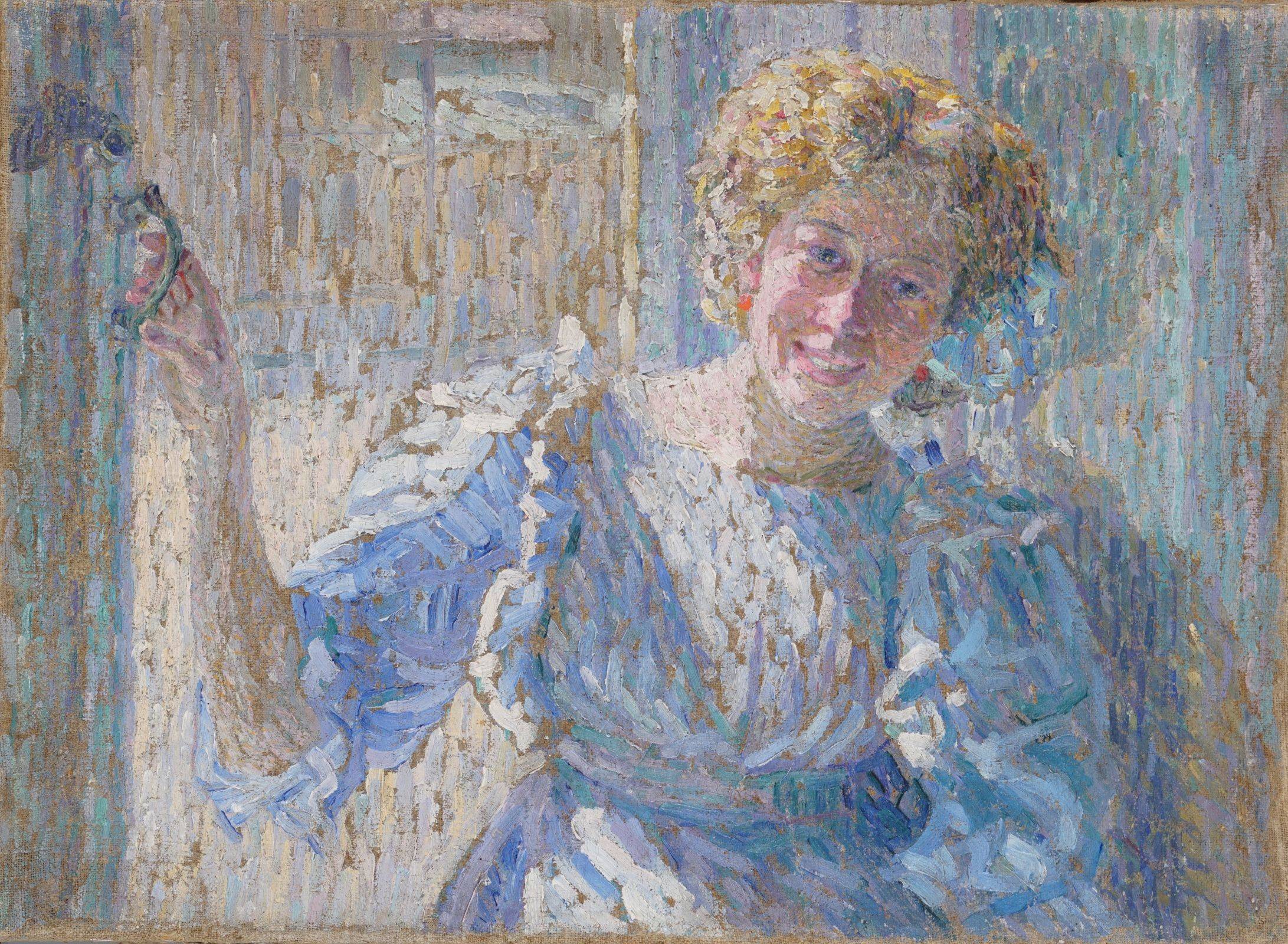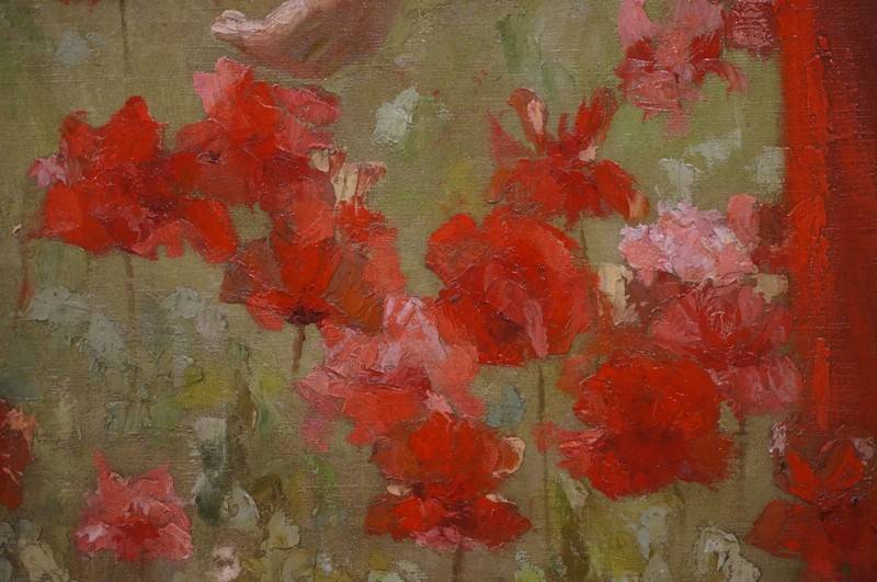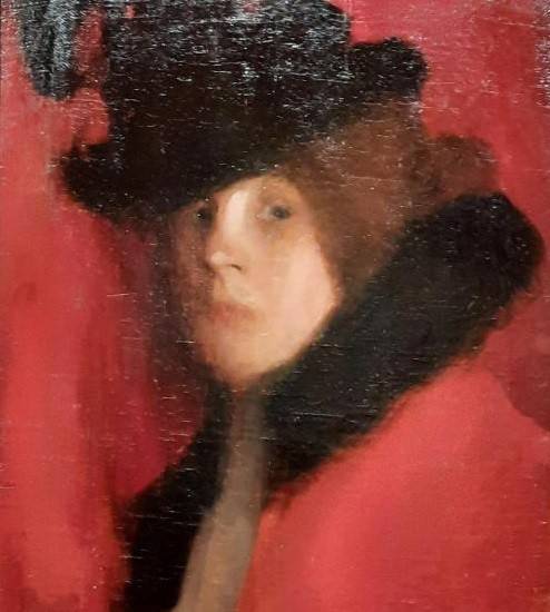 «Женщина в красном» Игоря Грабаря – это гимн сильному цвету, звучащему, как фанфары. Лицо дамы не слишком примечательно, зато как мощно «звучит» всё, что её окружает! Контрастом – чёрная шляпа и такого же цвета воротник. Красно-чёрное сочетание – тревожно и волнующе. Грабарь, как никто умел передавать малейшие тонкости. «Ванда» Александра Богомазова – это портрет любимой жены и музы. Белокурая дива, она явлена в насыщенном потоке света, благодаря чему образ точно распадается на блики. Ванда появляется, как богиня, но снисходительная, смеющаяся.